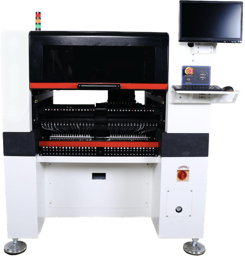 Number of Heads: 8 Placemente Rate: Max. 16,000 CPH Aligment: Vision & Vacuum Feeder Capacity: Reel Tape Feeder: Max 66 (Electric/Pneumatic) Vibratory: 5 Max PCB Size: 540 x 300 mm (In single Step) Component Range: Smallest Size: 0201 / Largest Size: TQFP240 Max Height: 5mm External Dimensions(mm): Machine Size: 1288(L) x 1062(W) x 1291(H) Peso neto: 360 kgr |